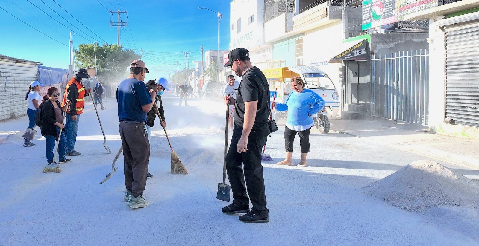 La primera jornada del 2026 se realizó en la colonia Las Palmas, donde se llevaron a cabo trabajos de limpieza en un tramo aproximado de un kilómetro, desde el establecimiento “El Charro” hasta la escuela Narciso Mendoza. Las acciones incluyeron la limpieza del camellón central en ambos sentidos de la vialidad, así como el desazolve de arena, logrando el retiro de un total de 38 bolsas de basura.