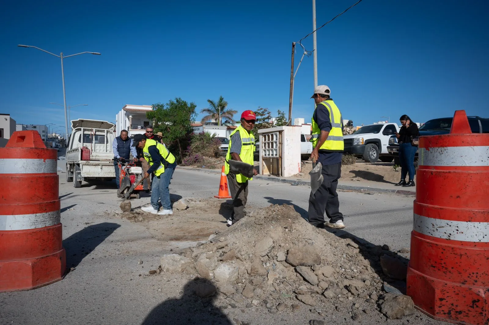 • Se realizó el bacheo con asfalto de la calle Playas en el fraccionamiento Gardenias con el apoyo del personal de Obras Públicas, Servicios Públicos y Tránsito y Vialidad.