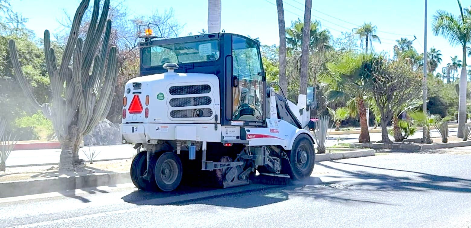 Dentro de las acciones para mejorar el mantenimiento urbano el Ayuntamiento de Los Cabos, a través de la Dirección General de Servicios Públicos, realiza trabajos permanentes de limpieza mediante barrido mecánico en vialidades del municipio.