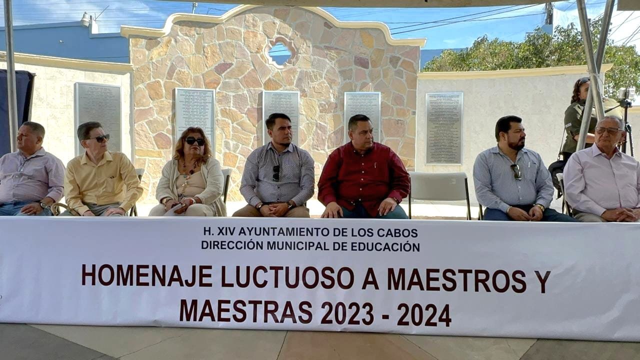 Con motivo por la conmemoración del Día de la Maestra y el Maestro, la Dirección Municipal de Educación en presencia de autoridades municipales, integrantes en activo del magisterio y del sindicato, personas jubiladas, pensionadas, familiares de las y los fallecidos e integrantes de diferentes asociaciones y sociedad civil en general, realizó en el Monumento a los Maestros Forjadores de Los Cabos en San José del Cabo, un homenaje póstumo para docentes forjadores de generaciones con más de treinta años de servicio.