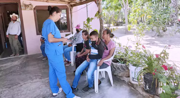 Consultas generales, toma de signos vitales, información del cuidado dental, entrega de medicamentos, apoyos asistenciales, así como actividades para la niñez como pintacaritas y dibujos, proporciona de forma permanente el Gobierno Municipal de Los Cabos a personas adultas mayores, amas de casa y niñez que radica en la zona rural de Cabo San Lucas, informó la coordinadora municipal de Salud Rural, Luz María Villafaña Beltrán, durante la jornada médico social que realizaron en la comunidad de San Vicente de la Sierra, donde se atendió a un promedio de 30 personas.