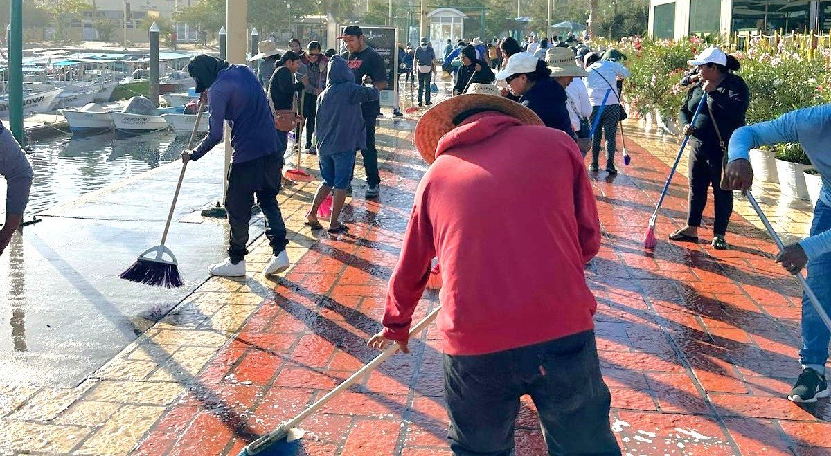 Alrededor de 105 vendedores ambulantes y locatarios, colaboraron con actividades de limpieza en la Marina de Cabo San Lucas, concentrando los esfuerzos en un tramo de 2.5 kilómetros, donde lavaron el piso con productos 100 por ciento biodegradables y retiraron cientos de gomas de mascar, con el fin de contribuir con las autoridades municipales, en el ordenamiento y limpieza del primer cuadro de la ciudad y la zona de El Médano.