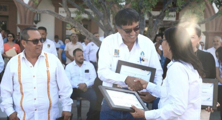 En el marco del acto cívico de honores a la bandera celebrado este lunes en la explanada del Palacio Municipal de San José del Cabo, el alcalde Oscar Leggs Castro, encabezó la entrega de reconocimientos al personal sindicalizado de la Tesorería General Municipal con más de 20 años de servicio.