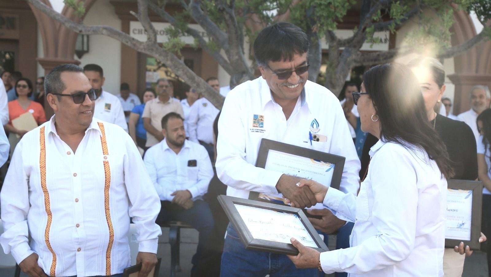 Finalmente, se destaca que durante la entregada de reconocimientos el presidente municipal Oscar Leggs Castro estuvo acompañado por la secretaria general del Sindicato de Burócratas sección Los Cabos, Marisela Montaño Peralta, la contralora municipal Lorena Berber Holguín, la secretaría ejecutiva del Sistema de Protección de Niñas, Niños y Adolescentes, Linda Natalia Olvera Plaza y el tesorero municipal Christopher Albertini Camacho Ortegón, entre otras autoridades.