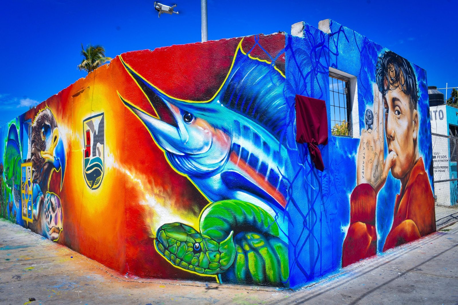 - Dicha obra se encuentra en la esquina de la calle Niños Héroes y Melchor Ocampo, en Cabo San Lucas, representando un orgullo para la comunidad local y un referente cultural para futuras generaciones.