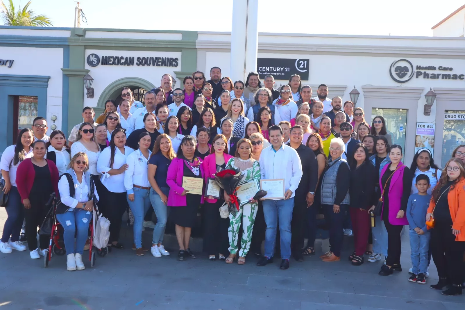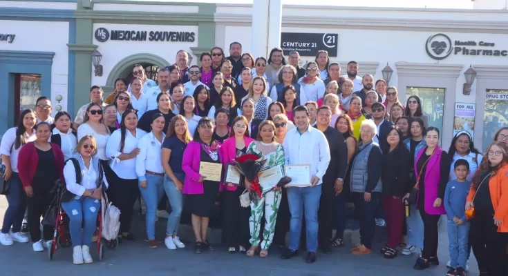 Durante el acto cívico de honores a la bandera en la explanada del Palacio Municipal en San José del Cabo, el personal del Organismo Público Descentralizado del Sistema Municipal para el Desarrollo Integral de la Familia de Los Cabos y del Sindicato de Burócratas Sección Los Cabos, hicieron entrega de un merecido reconocimiento a Sandra María Manzo Carballo por sus 31 años de servicio en la Unidad Básica de Rehabilitación iniciando con ello su etapa de jubilación.