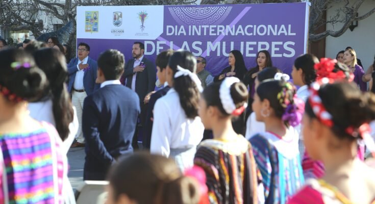 El presidente municipal de Los Cabos, Christian Agúndez Gómez encabezó el acto cívico realizado en la explanada del palacio municipal, donde se dio inicio a las actividades conmemorativas del Día Internacional de la Mujer, a conmemorarse el próximo 8 de marzo.