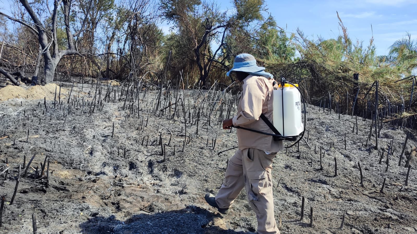 • Realizó la Dirección de Ecología y Medio Ambiente un recorrido en zona siniestrada en la reserva del Estero de San José del Cabo para descartar que no queden restos de brazas que pudieran propagar de nuevo el fuego.
