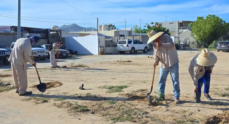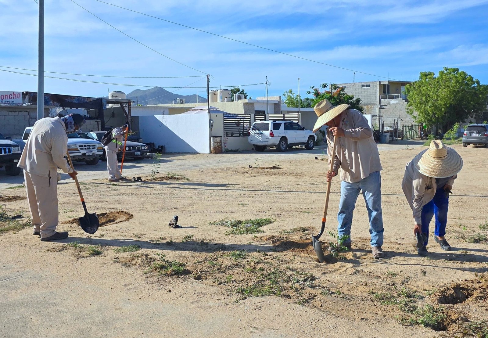 Para dignificar los espacios de convivencia en el municipio, la regidora del Cabildo de Los Cabos, Marisela Montaño Peralta, presidenta de la Comisión Edilicia de Servicios Públicos, encabezó una jornada de reforestación en el campo deportivo de la colonia Las Veredas, acompañada por el director municipal de Operación y Mantenimiento de Servicios Públicos, Ismael Marrón Sández.