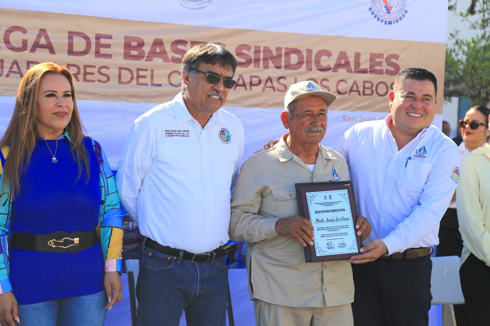 - La mañana de este lunes el alcalde Oscar Leggs Castro hizo entrega de nuevas plazas a personal del Organismo Operador Municipal del Sistema de Agua Potable, Alcantarillado y Saneamiento de Los Cabos.