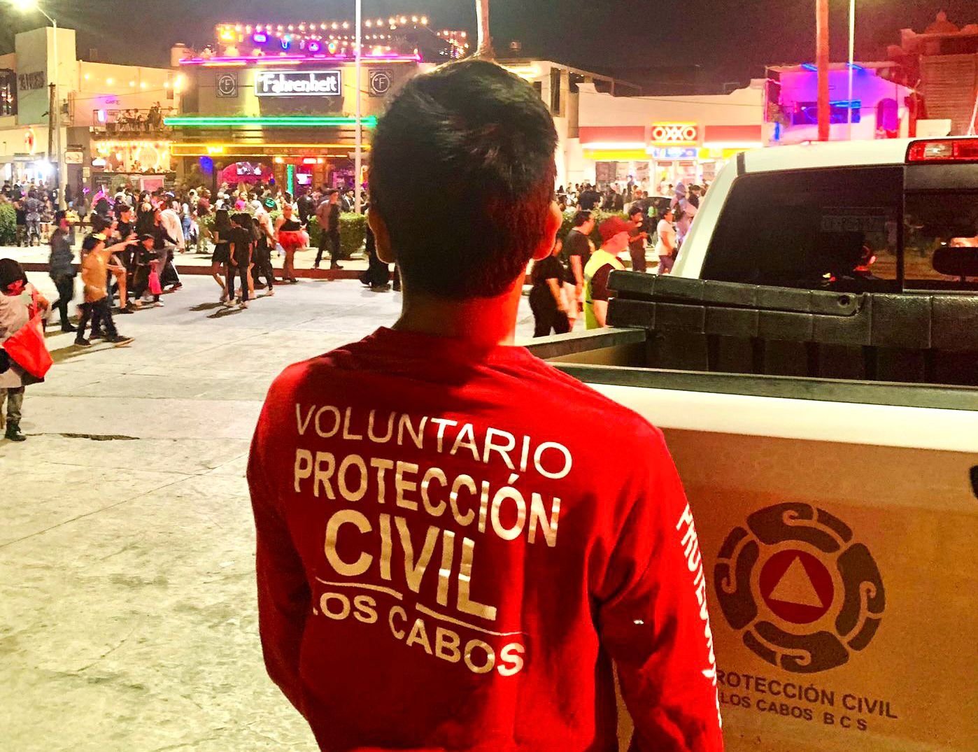A fin de mantener el orden y la seguridad en la zona Centro de Cabo San Lucas, 65 elementos pertenecientes a las áreas de Protección Civil, Seguridad Pública, la Secretaría de Marina y Tránsito y Vialidad, fueron desplegados en las principales vialidades del primer cuadro de la ciudad, con el objetivo de garantizar la integridad física de más de 30 mil personas que se dieron cita para celebrar la costumbre anglosajona conocida como “Halloween”.