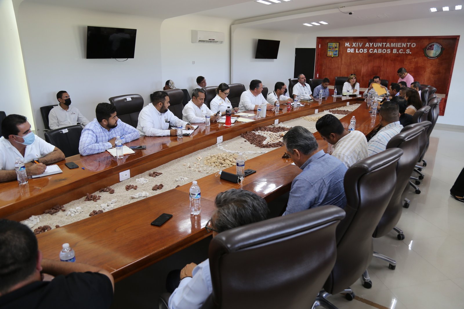 En la sala de juntas del Instituto del Deporte del Municipio de Los Cabos, autoridades municipales y estatales encabezadas por el secretario general de Gobierno del Ayuntamiento, Ariel Castro Cárdenas, sostuvieron una reunión para dar seguimiento a los acuerdos y propuestas fijadas con representantes del servicio de transporte federal.
