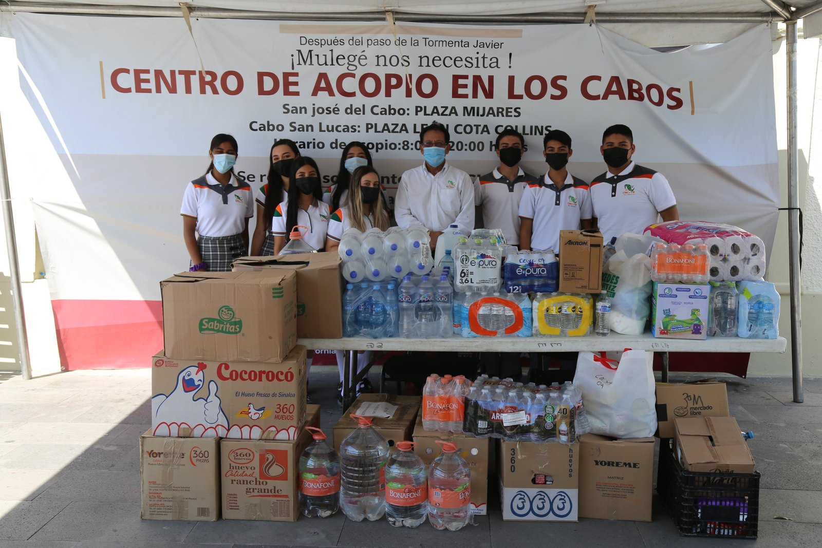 El Gobierno de Los Cabos que preside Oscar Leggs Castro y el Colegio de Estudios Científicos y Tecnológicos del Estado de Baja California Sur plantel 04, ubicado en la colonia Santa Rosa de San José del Cabo, suman esfuerzos para apoyar a las familias del municipio de Mulegé que resultaron damnificadas tras el paso del huracán “Kay”, ello a través del acopio de víveres que organiza la XIV Administración Municipal.