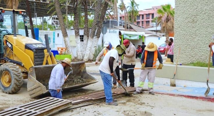 • Se llevaron a cabo trabajos de retiro de basura, lodo y desechos acumulados por las recientes lluvias en zonas como la colonia Santa Rosa, El Zacatal, Guaymitas y en el centro de San José del Cabo.