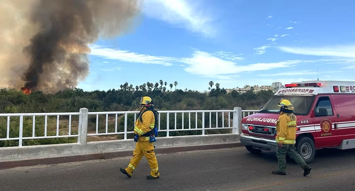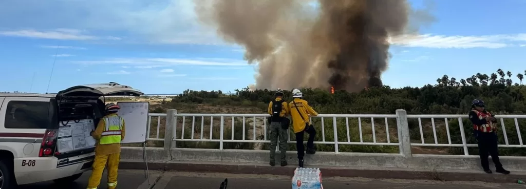Autoridades del Gobierno Municipal reiteran el llamado a la ciudadanía no acercarse a la zona del incendio en las inmediaciones del Estero de San José del Cabo, a fin de poder realizar el trabajo que desarrollan elementos del Cuerpo de Bomberos de San José del Cabo para sofocar el siniestro.