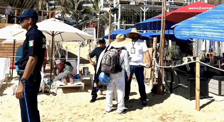 Con el objetivo de garantizar un comercio equitativo pero sobre todo pacífico para locales y visitantes durante el periodo vacacional de Semana Santa, por medio de recorridos de supervisión y vigilancia en las diferentes playas públicas, el Gobierno de Los Cabos a través del Departamento de Inspección Fiscal y la Dirección de Seguridad Pública Municipal desplegó un total de catorce inspectores en Cabo San Lucas desde el Hotel RIU Palace hasta la playa La Empacadora apoyados con dos cuatrimotos.