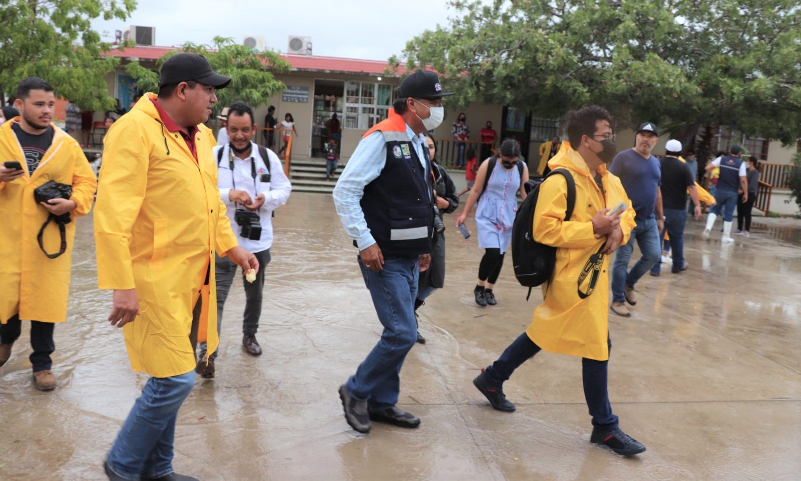 Para verificar las condiciones de las instituciones educativas que fungen como refugios temporales y que en este momento ofrecen resguardo y cobijo a la ciudadanía que habita en zonas de alto riesgo en Cabo San Lucas, el presidente municipal Oscar Leggs Castro y el delegado Raymundo Zamora Ceseña, en compañía de funcionarios de la XIV Administración, visitaron la escuela Héroes de 1847, Fernando Inés Cota Sández y Telesecundaria Núm. 29.
