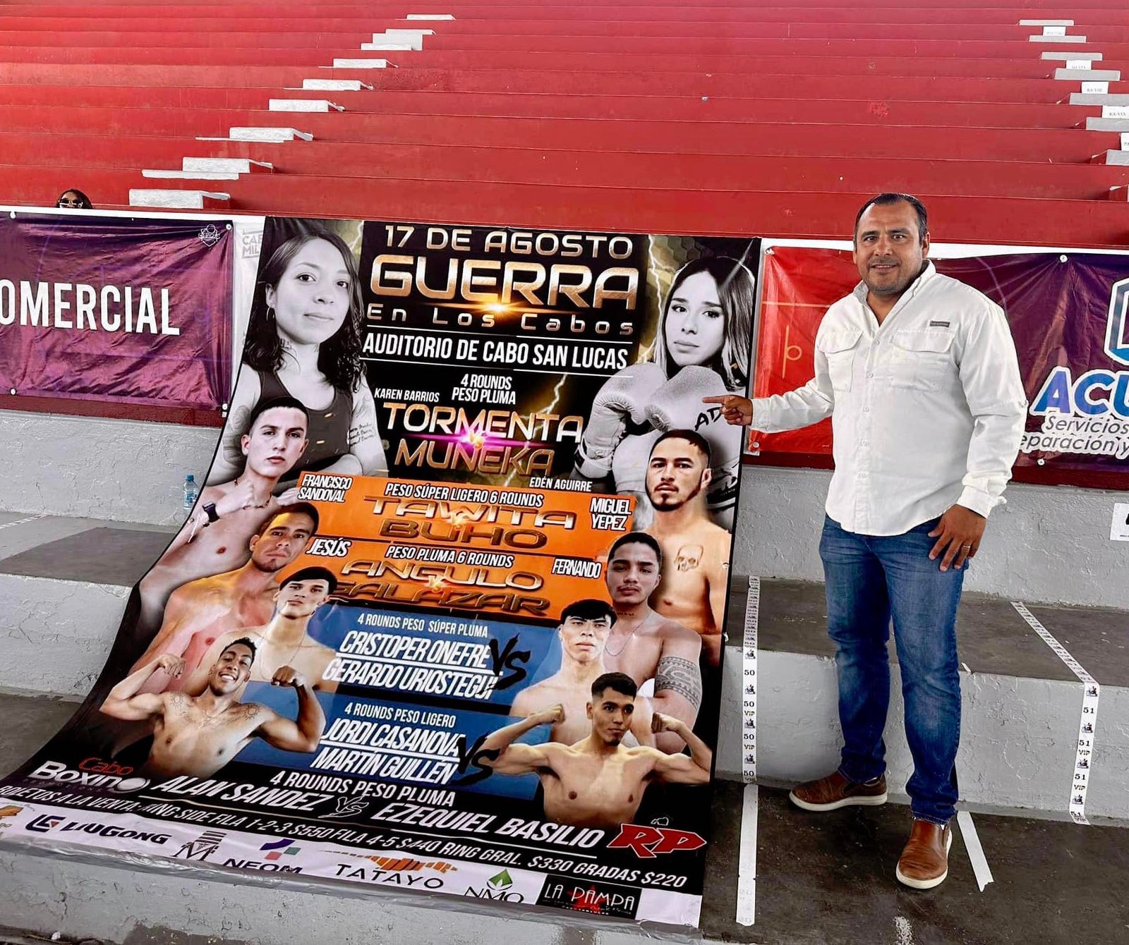 Finalmente Ricardo Hernán Manríquez Castillo, explicó que previo al evento, el mismo sábado por la mañana se realizará una función de box amateur con deportistas locales que han representado a Los Cabos en olimpiadas estatales y nacionales y en la noche se desarrollarán las 5 peleas en los pesos: pluma, súper pluma, ligero y súper ligero.