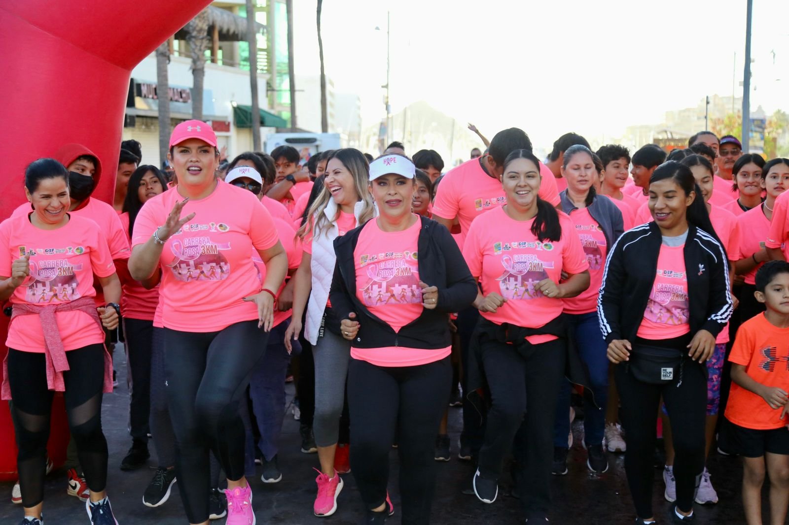 Como parte de las acciones impulsadas por el XIV Ayuntamiento a través del Sistema DIF Los Cabos que preside Flora Aguilar de Leggs, para conmemorar el “Día Internacional de la Lucha Contra el Cáncer de Mama” este domingo se llevó a cabo la Carrera Rosa 3 Kilómetros, en la cual se tuvo la presencia de más de 300 ciudadanos, quienes se dieron cita a partir de la 7:00 de la mañana en la ciclovía de la delegación de Cabo San Lucas; cabe destacar, que durante el evento se le estuvieron suministrando a los participantes bebidas hidratantes, así como de una playera alusiva a dicha Carrera.