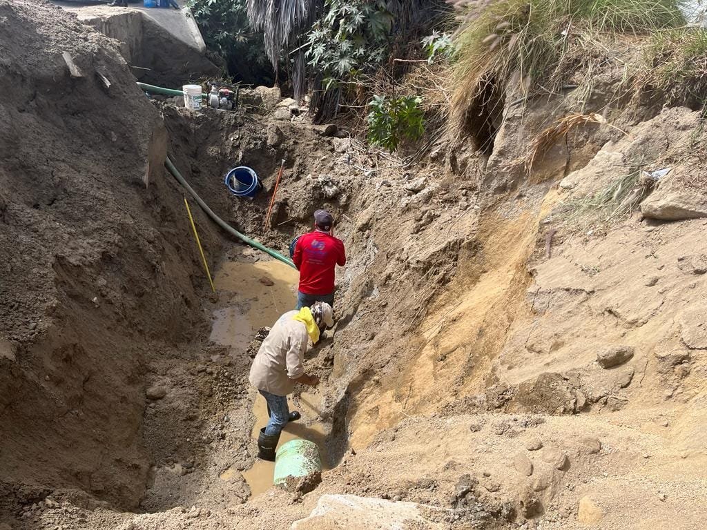 Luego de que se reportara una fuga en el Acueducto 2 Cabo Bello-Tanque Mil de Lomas del Sol, -a la altura de Sierra Dorada-, el equipo del Organismo Operador Municipal de Agua Potable y Saneamiento de Los Cabos trabaja en la reparación de la fuga para poder suministrar agua potable a las colonias Lomas del Sol III, Gastélum, Paraíso del Sol, Mesa Colorada ll y Caribe.