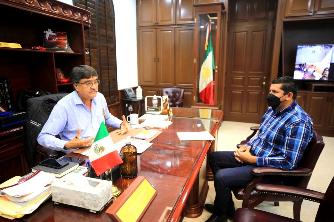 En la Presidencia del Palacio Municipal, el alcalde, Oscar Leggs Castro, recibió esta mañana al delegado de La Ribera, Miguel Mijares, para entablar una reunión y tratar asuntos generales de importancia para el desarrollo de dicha población, obras que corresponden principalmente a la Dirección General de Obras Públicas y Asentamientos Humanos.