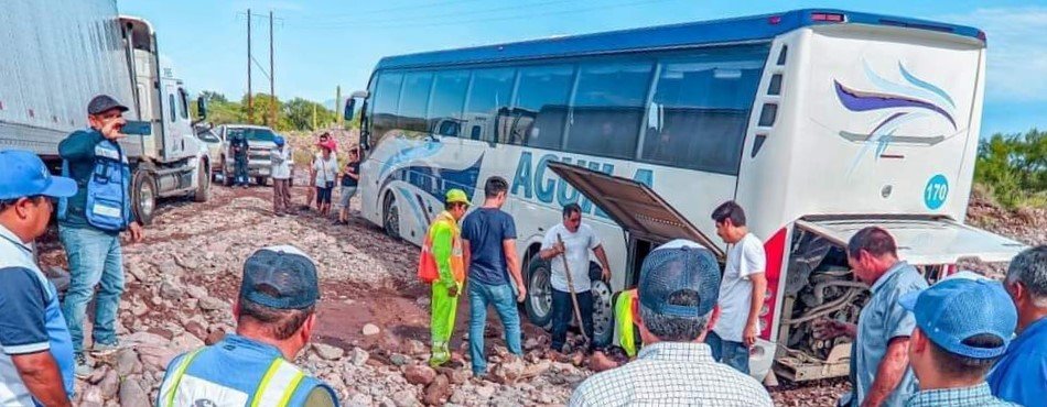 Por su parte, Fidel González, director de protección civil municipal, dio a conocer que un autobús de pasajeros de Autotransportes Águila quedó varado en un cruce de arroyo derivado de las lluvias torrenciales de esta madrugada, “las labores de apoyo y rescate han comenzado, personal de la protección civil ya se encuentra atendiendo la situación, no se reportan daños graves ni pérdidas humanas”, declaró.