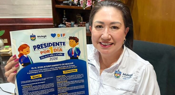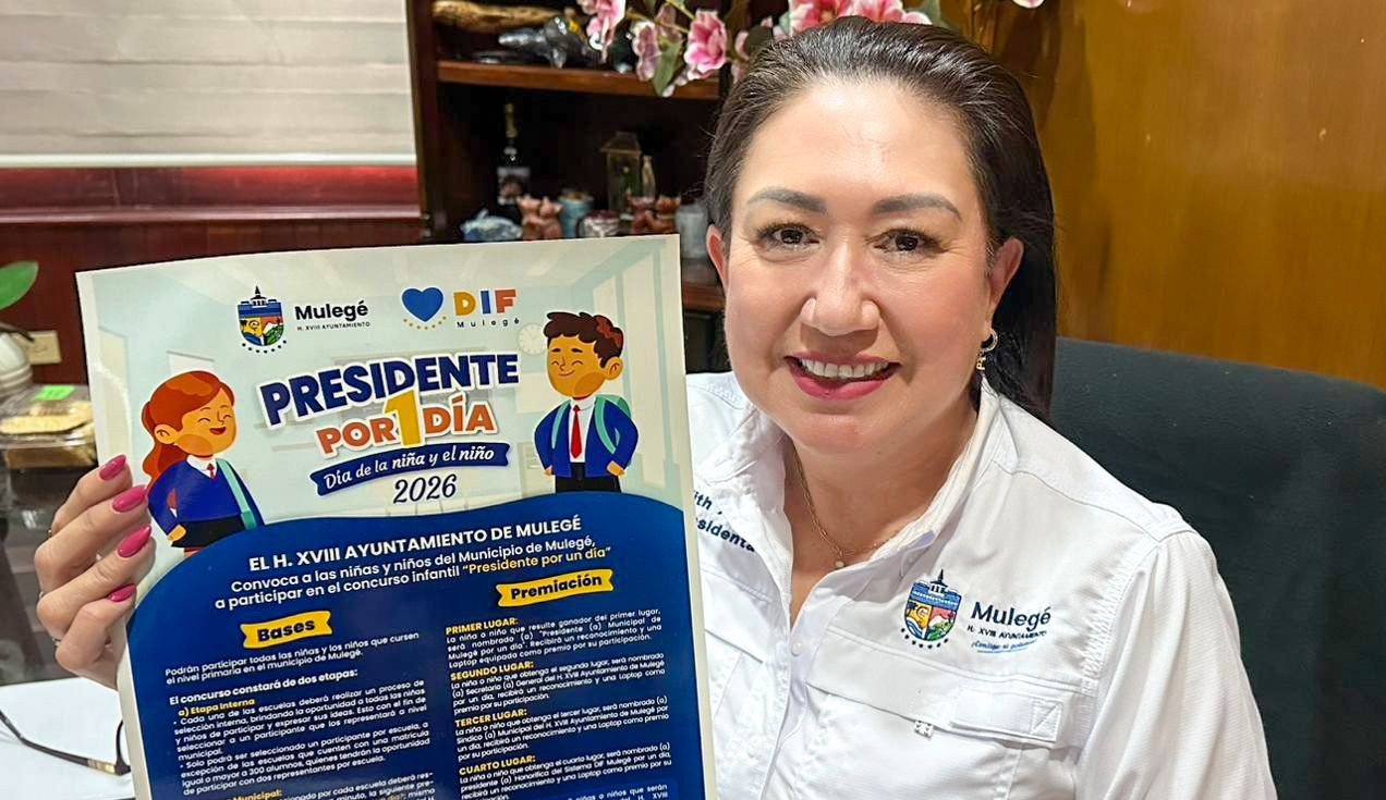La presidenta municipal de Mulegé, Edith Aguilar Villavicencio, dio a conocer la convocatoria del concurso infantil “Presidente por un Día 2026”, dirigida a estudiantes que cursen el nivel primaria en el municipio, en el marco del Día de la Niña y el Niño.