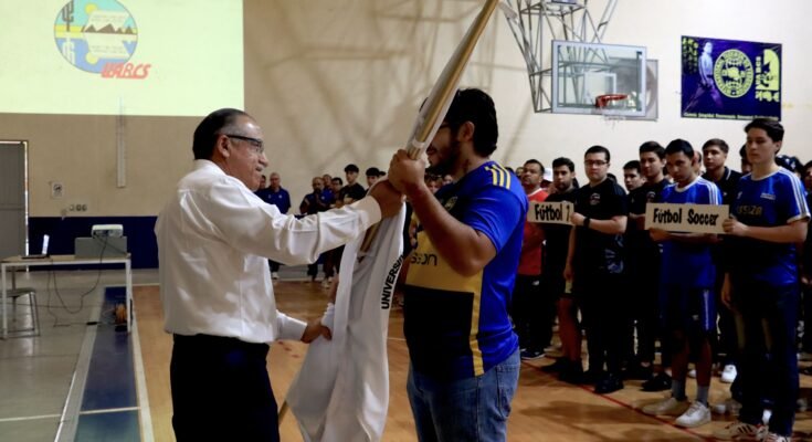 • El rector de la UABCS abanderó a la delegación universitaria que participará en los Juegos Regionales de la ANUIES.