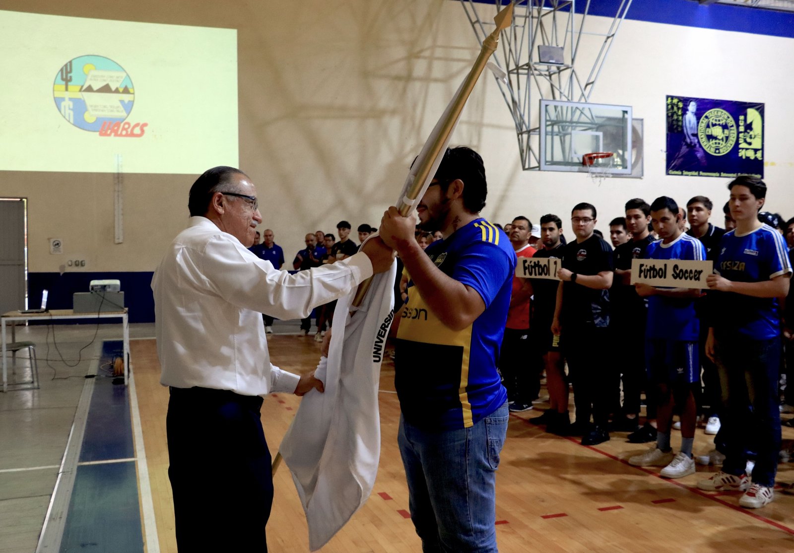 En el evento, entregó el estandarte universitario a los equipos selectivos de fútbol y básquetbol, conformados por un total de 32 deportistas que buscarán un lugar en la fase nacional de la competencia, donde ya se encuentra clasificada la institución de manera directa en disciplinas como box, voleibol de playa, tiro con arco, karate y atletismo.