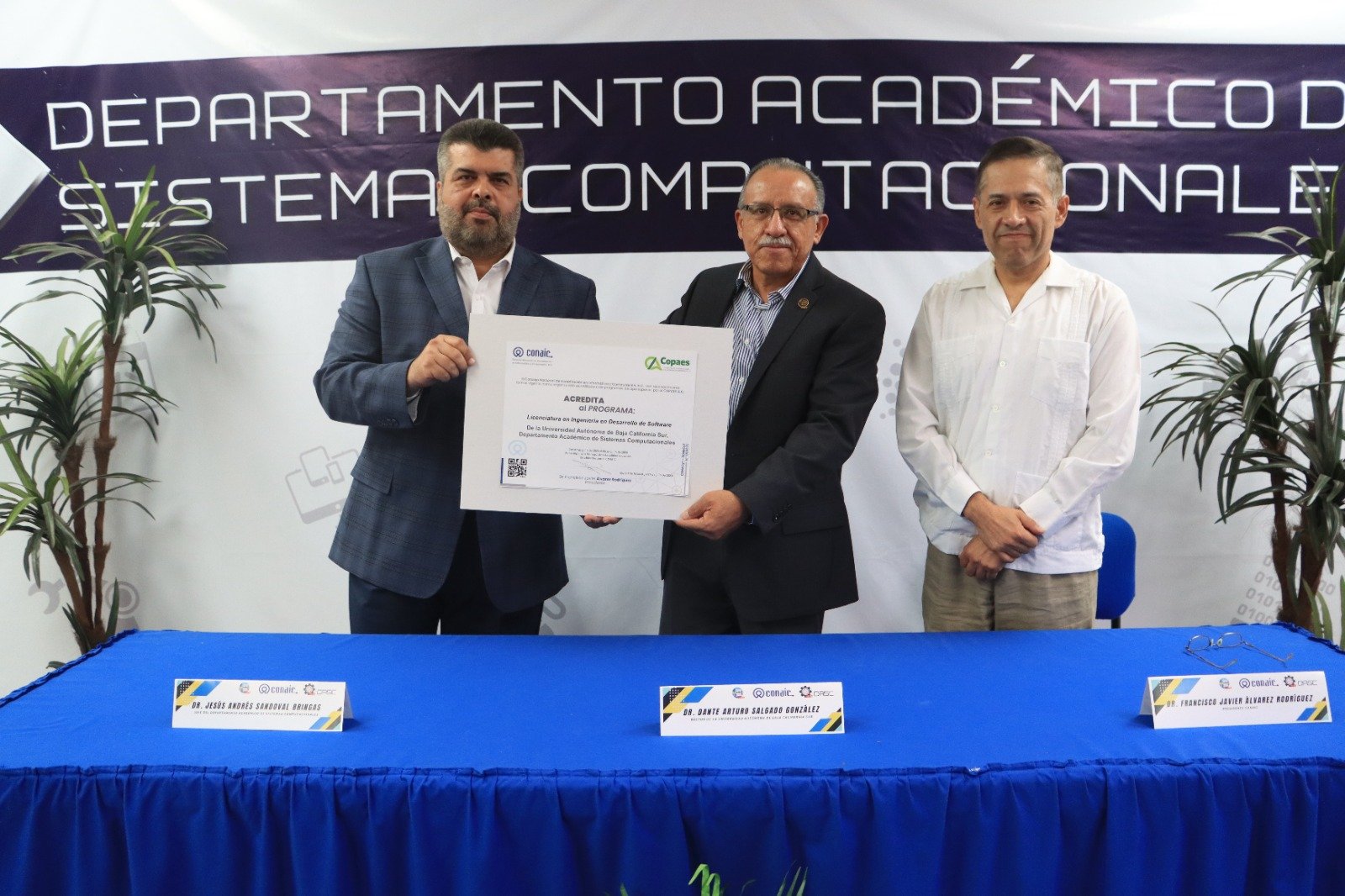 La entrega del reconocimiento tuvo lugar este 24 de abril, contando con la presencia del rector de la Universidad, Dr. Dante Salgado González, y del jefe del Departamento Académico de Sistemas Computacionales, Andrés Sandoval Bringas, quienes recibieron la distinción de manos del presidente del Consejo Nacional de Acreditación en Informática y Computación, Francisco Javier Álvarez Rodríguez.