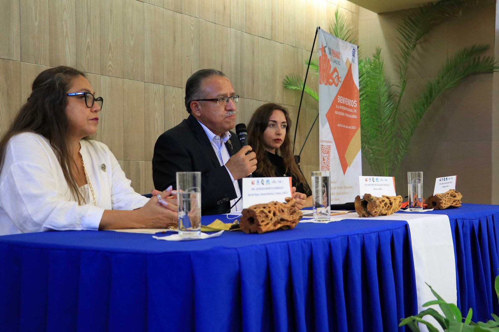 Además del rector y la presidenta de la Sociedad de Malacología, en el presídium estuvo la jefa del Departamento Académico de Ciencias Marinas y Costeras, Dra. Georgina Brabata, quien invitó particularmente al estudiantado a aprovechar las actividades contempladas en la asamblea, complementarias a su formación y de gran ayuda para su futuro profesional como biólogos marinos o bien, especialistas en las ciencias ambientales.