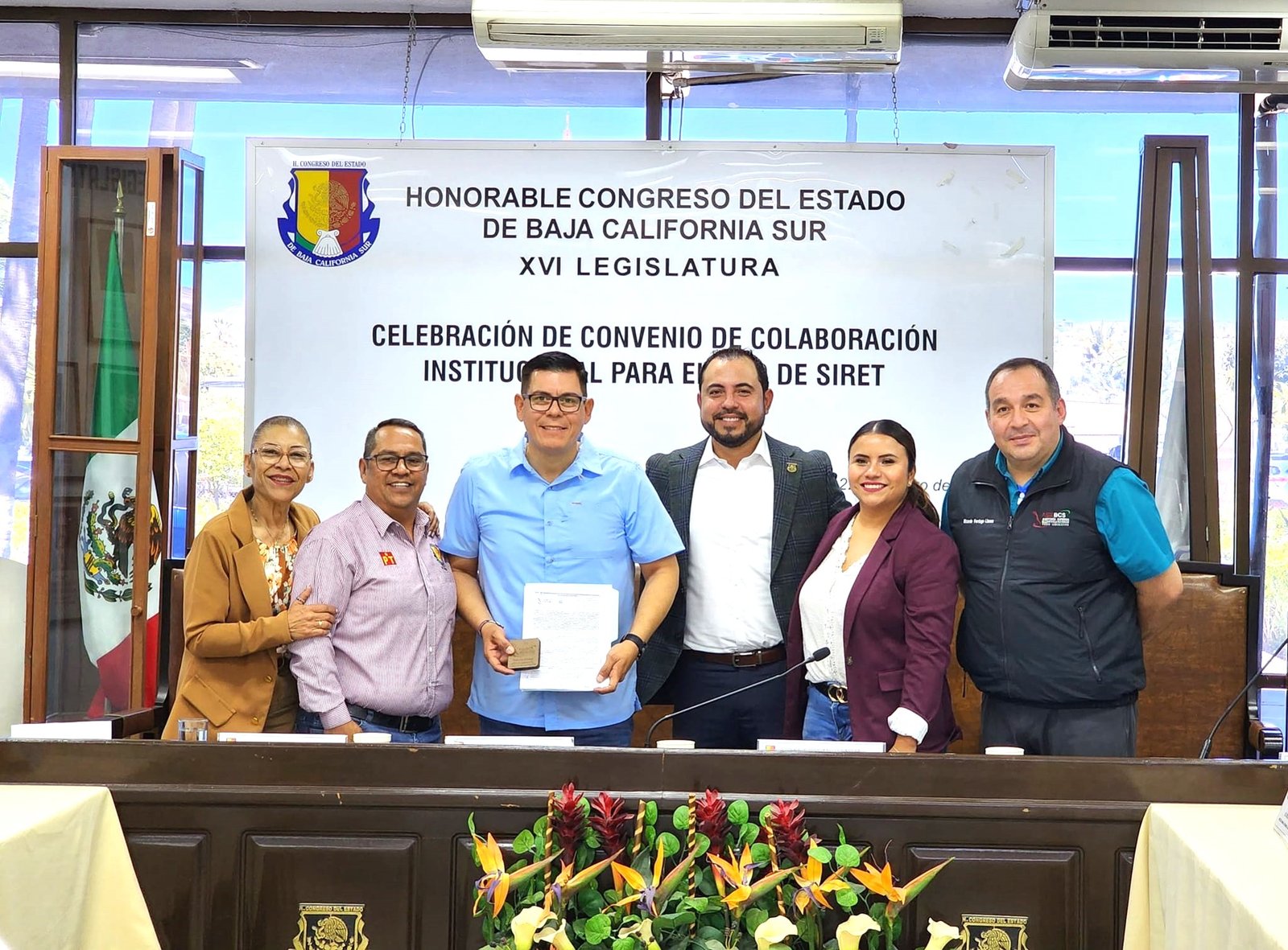 Durante los dos eventos protocolarios, la presidenta de la Mesa Directiva, diputada Guadalupe Vázquez Jacinto, el diputado Christian Agúndez Gómez, presidente de la Comisión de Vigilancia de la Auditoria Superior del Estado, el presidente de la Junta de Gobierno y Coordinación Política del Congreso, diputado Luis Armando Díaz y secretario de la Comisión de Vigilancia y la diputada María Guadalupe Moreno Higuera, secretaria de la Comisión de Vigilancia, hicieron entrega de los equipos y firmaron convenios con instituciones educativas, fideicomisos, DIF y el Instituto Estatal de Radio y Televisión de Baja California Sur.