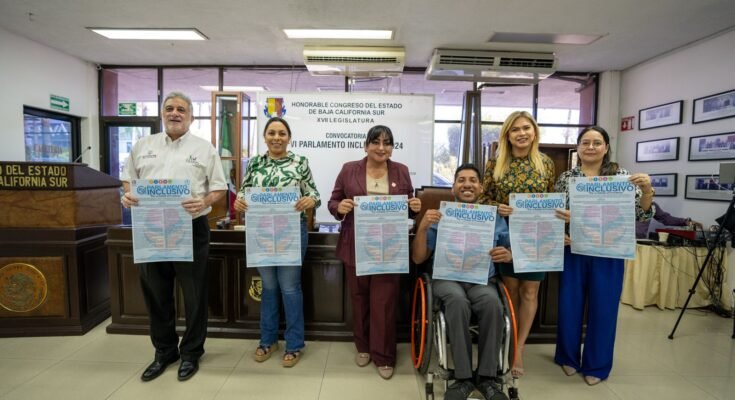 Teniendo como sede la Sala de Comisiones Lic. Armando Aguilar Paniagua del Congreso de Baja California Sur, la Comisión Permanente de Atención a Grupo Vulnerables y a Personas con Discapacidad de la XVII Legislatura, integrada por las diputadas, Dalia Verónica Collins Mendoza, presidenta, Guillermina Díaz Rodríguez, secretaria y Lourdes Cornejo Rendón, secretaria, presentó a medios de comunicación y en general a la sociedad sudcaliforniana las bases de la convocatoria del VI Parlamento Inclusivo de Personas con Discapacidad, “Por un Estado sin Fronteras” 2024.
