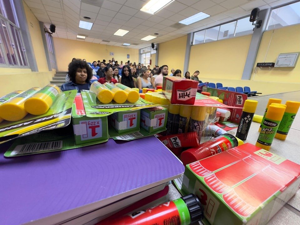 Indicó que la meta es entregar cerca de 200 paquetes escolares, beneficiando a infancias de las localidades de San Antonio, El Rosario y Valle Perdido, destacando la colaboración del alumnado universitario en la recolección y organización de los donativos.
