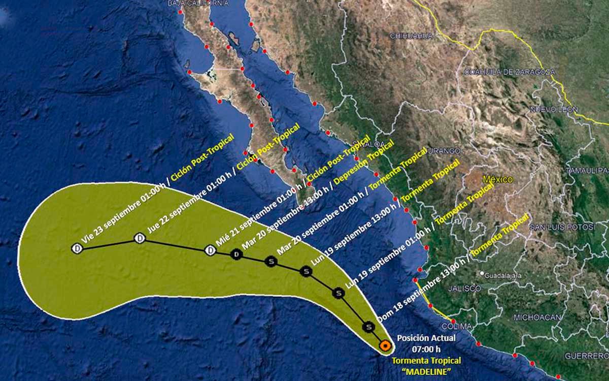 El gobernador Víctor Castro Cosío encabezó la sesión del Consejo Estatal de Protección Civil en seguimiento a la tormenta tropical Madeline, la cual se ubica a 245 kilómetros al sur-suroeste de Cabo Corrientes, Jalisco y a 580 km al sur-sureste de Cabo San Lucas, Baja California Sur.