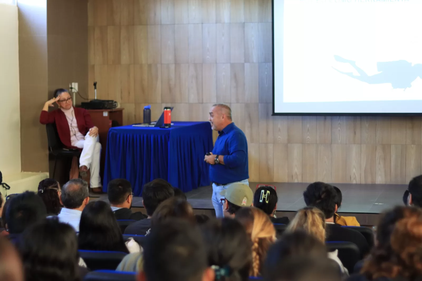 Alumnado y personas entusiastas del ámbito marino participaron en una conferencia sobre el estado actual del buceo científico en México y América Latina, impartida en la Universidad Autónoma de Baja California Sur por Edgardo Ochoa, Oficial de Buceo y Seguridad Marina de Conservación Internacional.
