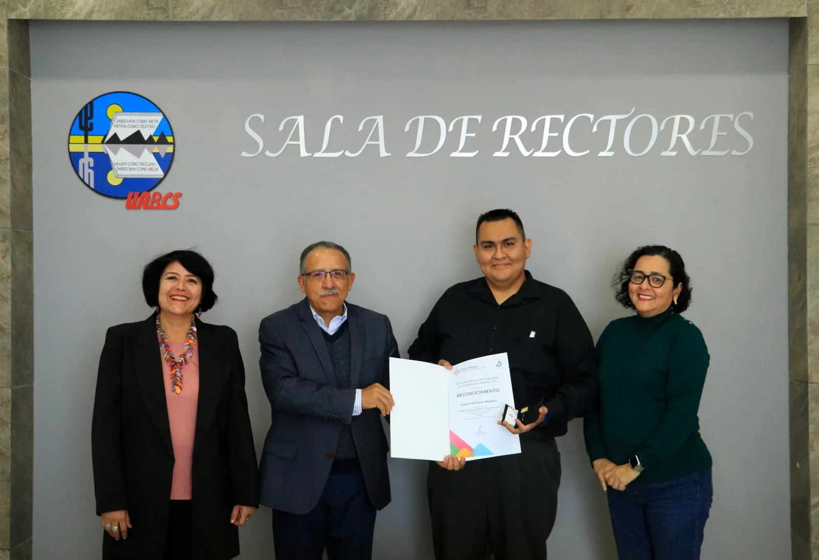El acto de entrega fue presidido por el rector de la UABCS, Dante Salgado González, quien destacó el excepcional logro, pero sobre todo el hecho de que la institución cuente con alumnos tan comprometidos con su quehacer académico.