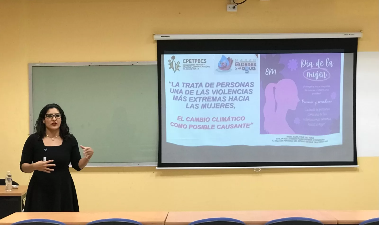 - La responsable de la Comisión Estatal para Prevenir y Erradicar la Trata aborda temas cruciales en la UABCS en el marco del mes de la Mujer, por lo que impartió ponencias a estudiantes del Posgrado en Ciencias Sociales