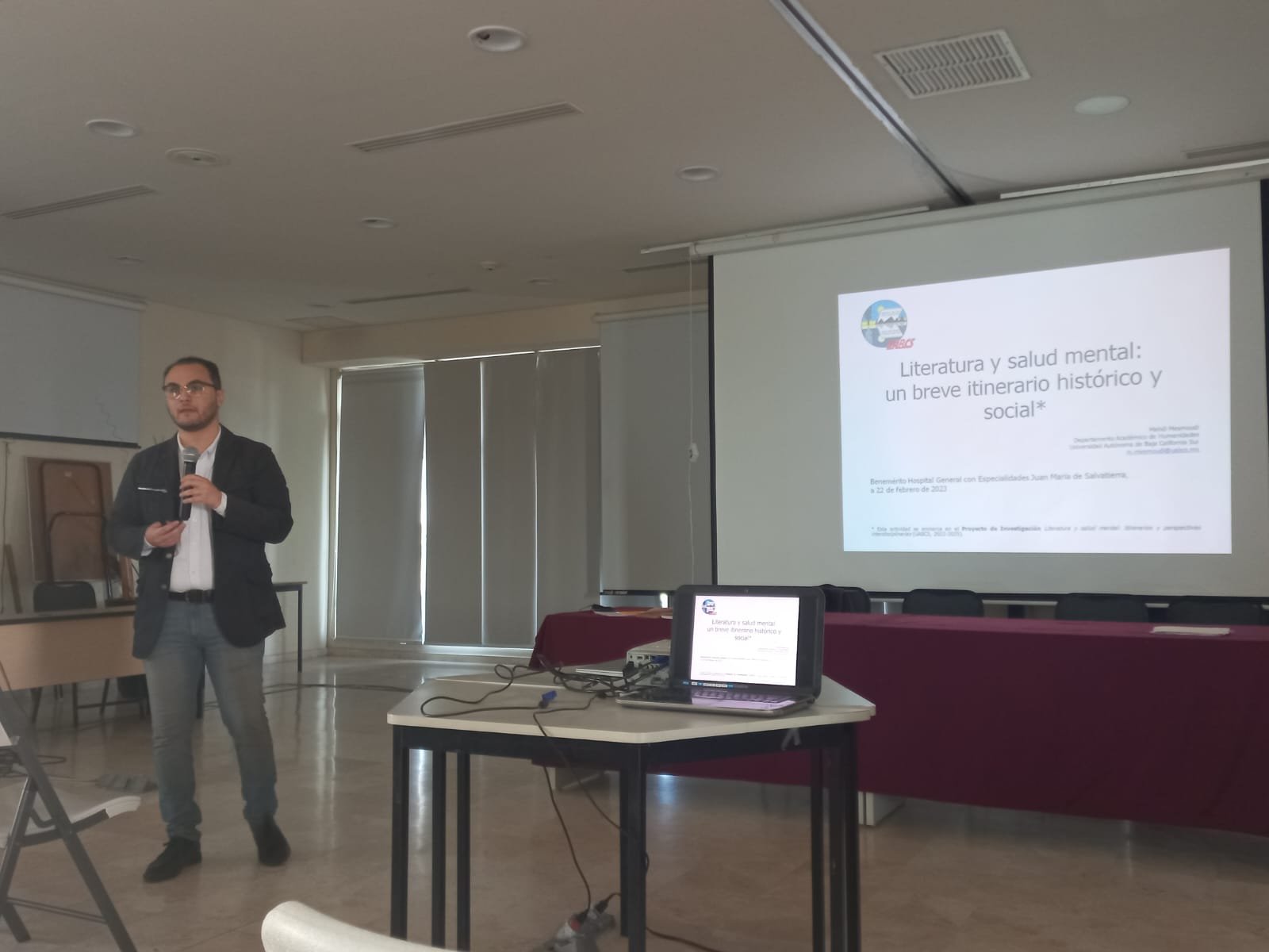 Por invitación de la Asociación Médica del Benemérito Hospital General con Especialidades “Juan María Salvatierra”, Mehdi Mesmoudi, profesor-investigador de la Universidad Autónoma de Baja California Sur impartió una conferencia sobre la relación entre la literatura y la salud mental dirigida a residentes de pediatría y personal médico.