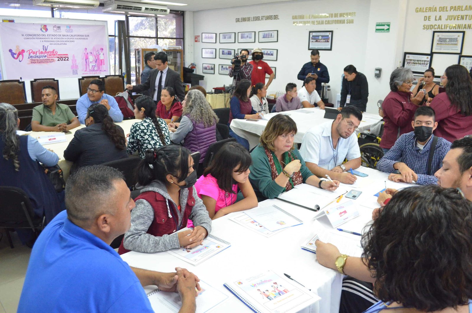 Al iniciar este miércoles el IV Parlamento Inclusivo Sudcaliforniano 2022 “Por la Inclusión en Baja California Sur, reunidos los 21 parlamentarios en la Sala de Comisiones Armando Aguilar Paniagua, participaron activamente en las mesas temáticas, abordando temas como: movilidad, educación y laboral, temas que ellos mismos eligieron.
