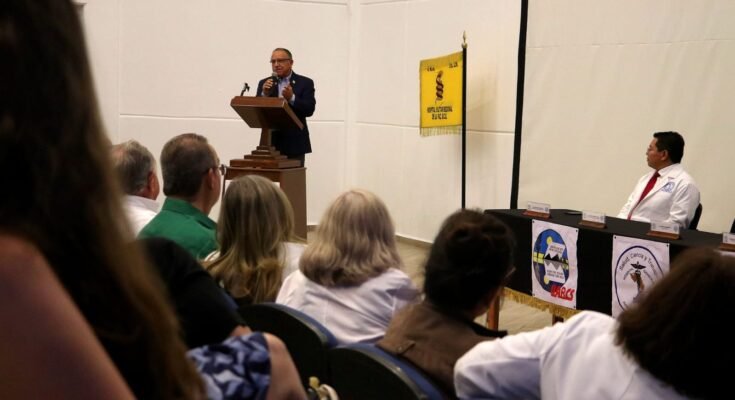 Acompañando al rector estuvo el Dr. José Efraín Torres Valdos, presidente de la Sección Colegiada La Paz del Colegio de Médicos Cirujanos de BCS, quien habló del trabajo que vienen realizando como asociación para fortalecer el desarrollo profesional de sus agremiados.