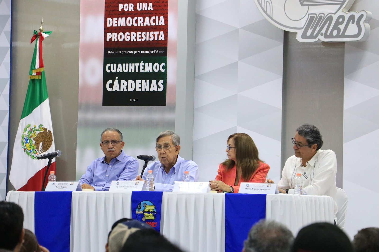 La tarde de ayer jueves, Cuauhtémoc Cárdenas Solórzano presentó en la Universidad Autónoma de Baja California Sur su libro “Por una democracia progresista. Debatir el presente para un mejor futuro”, ante integrantes de la comunidad universitaria y ciudadanía.