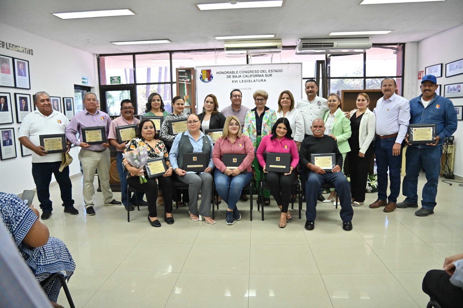 Trabajadores del Congreso del Estado de Baja California Sur fueron reconocidos por 5,10, 20 y 30 años de servicio, siendo estos Yessica Marlén Martínez López por cinco años de servicios; Alfonso Villalobos Martínez por 10 años; Itza Jazmín Acevedo Savín por 15 años de servicio; Jorge Fidel Manríquez Carrillo, Amalia Montijo Leyva y Mónica Ibarra Ibarra por 20 años de servicio; Elizabeth Ortega Verdugo y María del Carmen Zúñiga Osuna por 25 años de servicio; Raúl Octavio Larios Cabrera, Sergio Ortiz González y Vera de la Cruz Zárate Alfaro por 30 años de servicio, así como un reconocimiento especial a Mario Alberto Beltrán Aguilar por su proceso de jubilación.