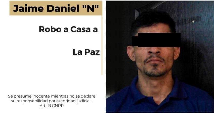 Una vez interpuesta la denuncia por la parte afectada y como resultado de labores de investigación en gabinete y campo de la Unidad de Investigación de Delito de Robo Sector Dos, elementos de la Agencia Estatal de Investigación Criminal cumplimentaron la orden de aprehensión en contra de Jaime Daniel “N”, por el delito de robo calificado a casa habitación.