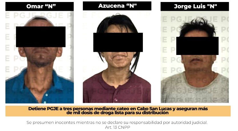 En acciones contra el narcomenudeo, la Procuraduría General de Justicia del Estado de Baja California Sur a través de la Subprocuraduría de Atención a Delitos de Alto Impacto, ejecutó una orden de cateo en un domicilio de Cabo San Lucas, donde fueron aseguradas mil 271 dosis de droga y detenidas tres personas.