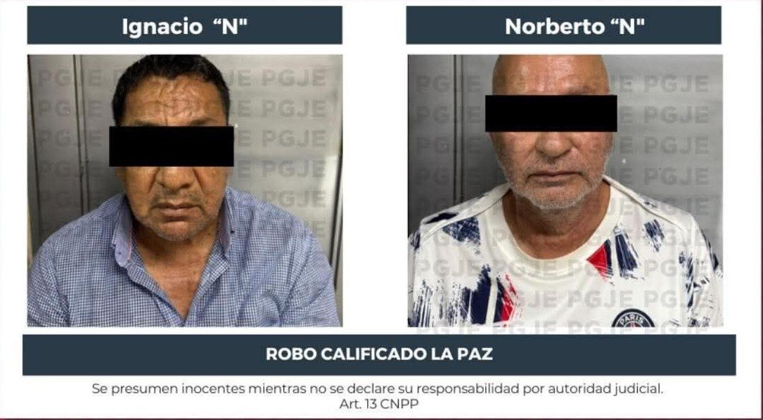 La Procuraduría General de Justicia del Estado de Baja California Sur logró la vinculación a proceso de Ignacio “N” y Norberto “N”, señalados como presuntos responsables de un robo calificado cometido en la colonia Centro de La Paz, hecho que ocurrió el pasado jueves 16 de octubre, cuando los imputados sustrajeron medio millón de pesos de un vehículo.