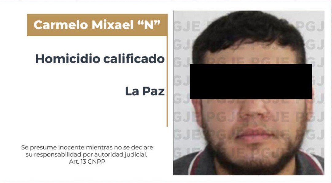- Elementos de la Unidad de Mandamientos Judiciales en La Paz y de la Unidad Especializada en la Investigación del Delito de Homicidio Doloso cumplimentaron la orden de aprehensión en contra de un hombre identificado como Carmelo Mixael “N”, por su probable responsabilidad en el delito de homicidio calificado, en agravio de un hombre.