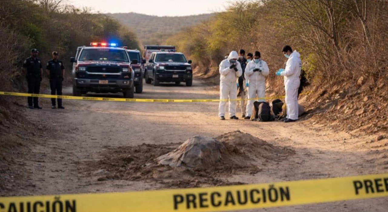 De acuerdo con el reporte del primer respondiente, el cuerpo, que de forma preliminar se presume corresponde al sexo femenino, fue localizado parcialmente enterrado, por lo que tras la confirmación del hallazgo, se instruyó de inmediato el acordonamiento y resguardo de la zona para preservar la escena del ilícito.