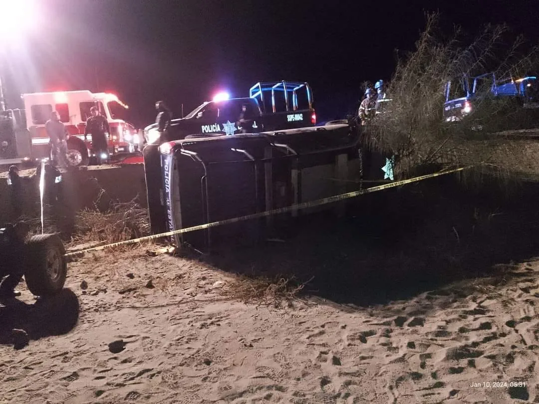 Esta secretaría informa que en el accidente se vio únicamente involucrada una unidad oficial de esta corporación, la cual se dirigía a las instalaciones de la Policía Estatal ubicadas en la colonia Calafia, para hacer el respectivo cambio de turno.