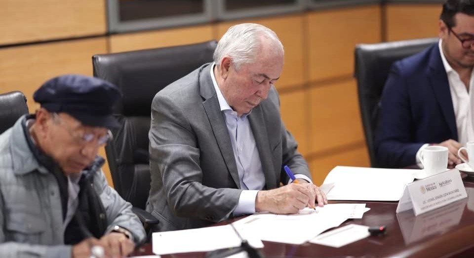 En la Secretaría de Agricultura y Desarrollo Rural se llevó a cabo la firma de un convenio de colaboración entre la Confederación Revolucionaria de Obreros y Campesinos y Leche para el Bienestar.